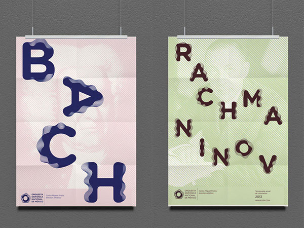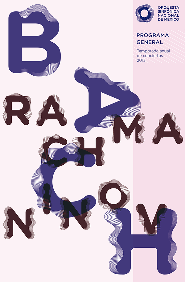 The National Symphonic Orchestra of Mexico (Orquesta Sinfónica Nacional) is one of the country's most relevant chamber music associations. After a process that involved asking: "how can we appreciate sound visually?" through experimenting with typography and different representations of sound, I decided to make a customized alphabet as one of the main elements of the graphic identity.
