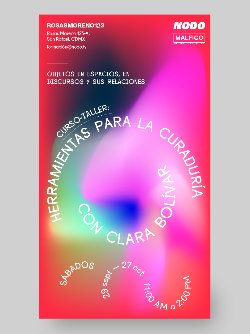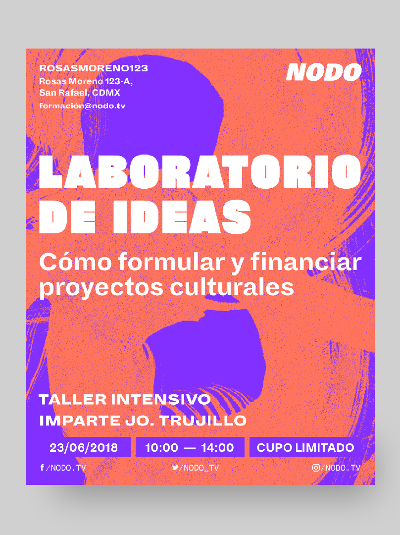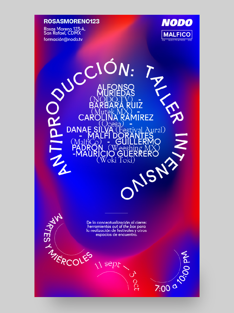 Carteles para los cursos de Antiproducción impartidos por NODO.TV, a lo largo de 2018 y hasta 2019.