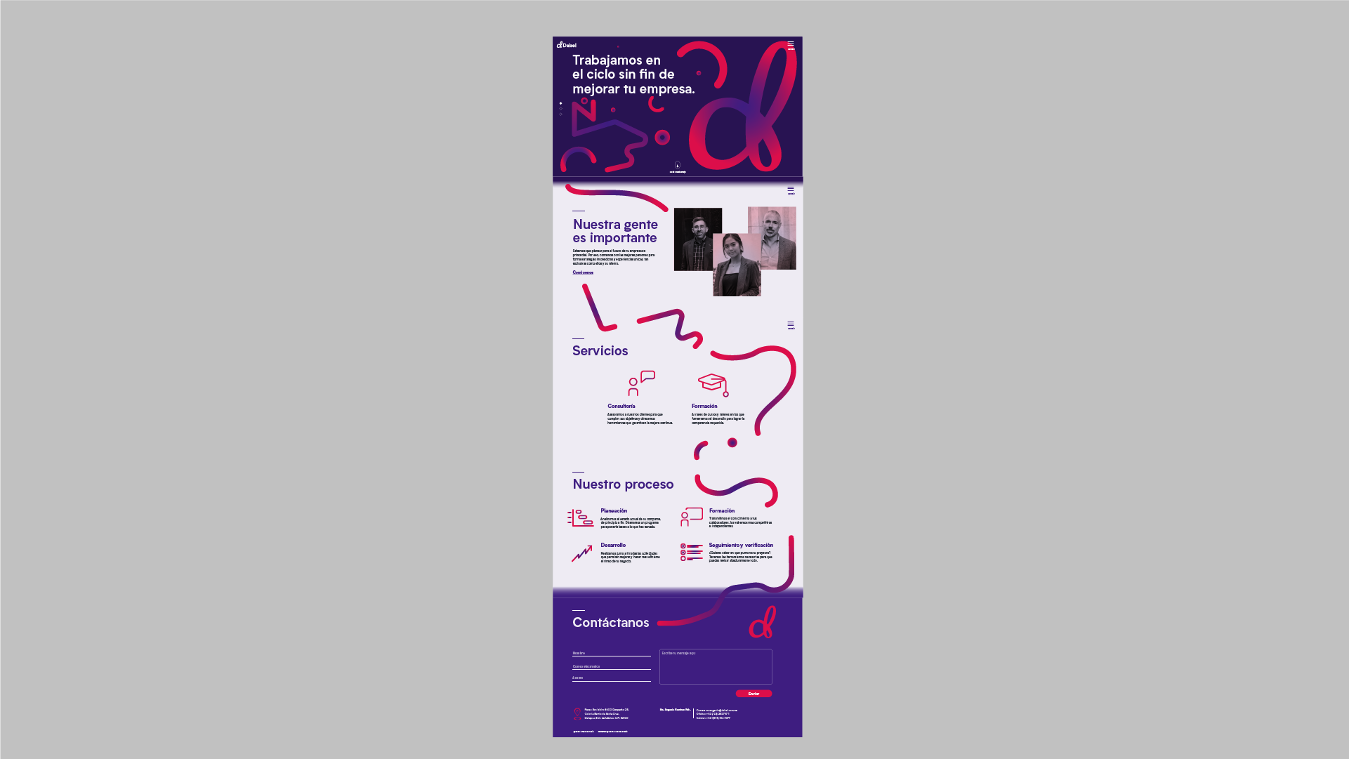 Dabel es una consultora dedicada a ofrecer regularización y soluciones de innovación a sus clientes. Para la marca, desarrollé una imagen que fuera corporativa y dinámica al mismo tiempo. la "D" de Dabel al mismo tiempo es una banda de Moebius, representando la constante sinergia entre la consultoría y la empresa con el motivo de mejorar sus procesos.