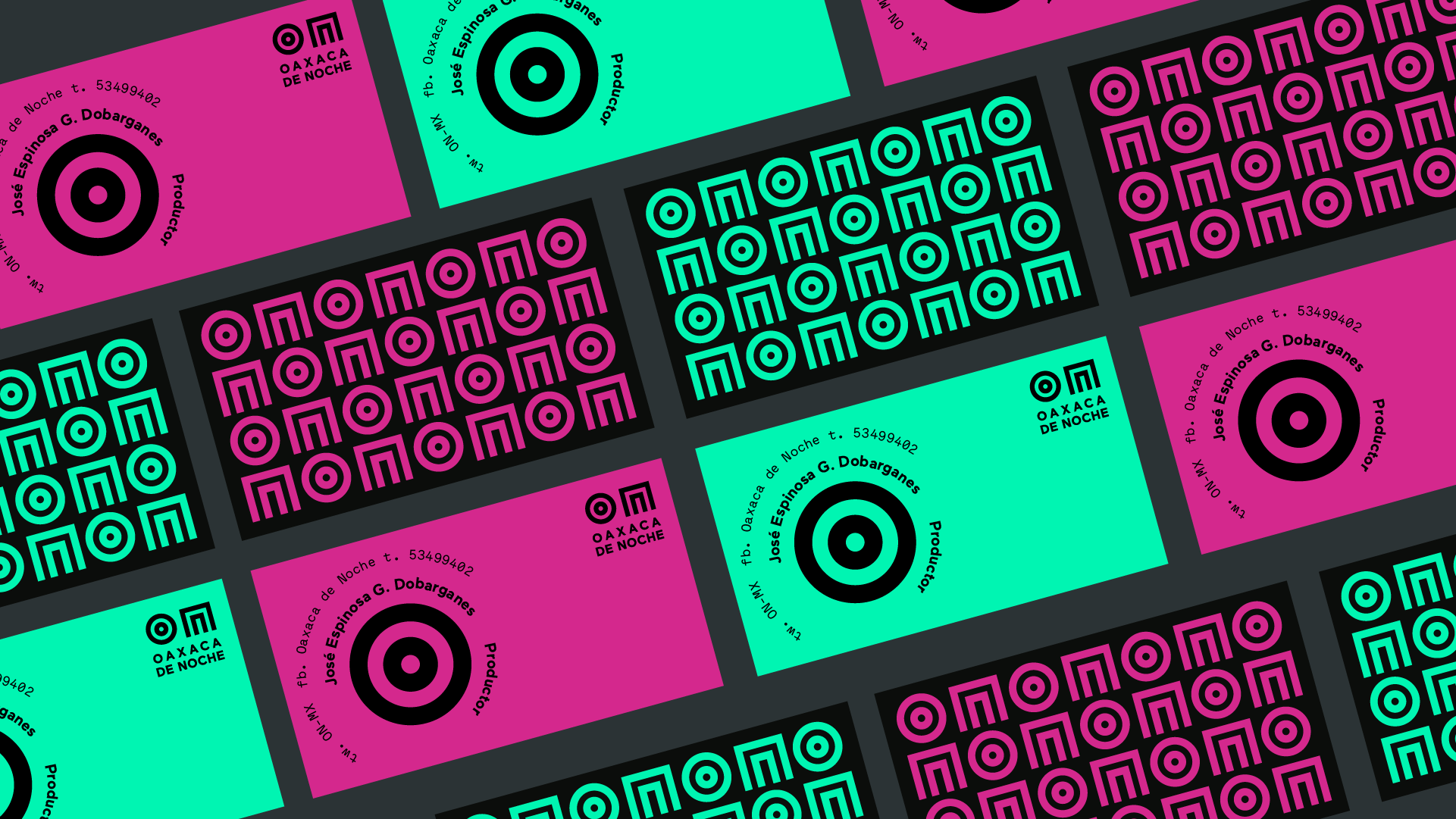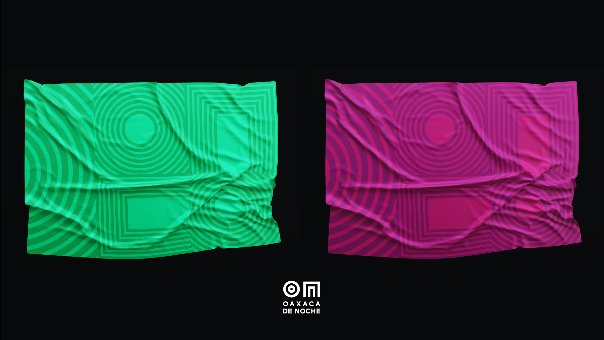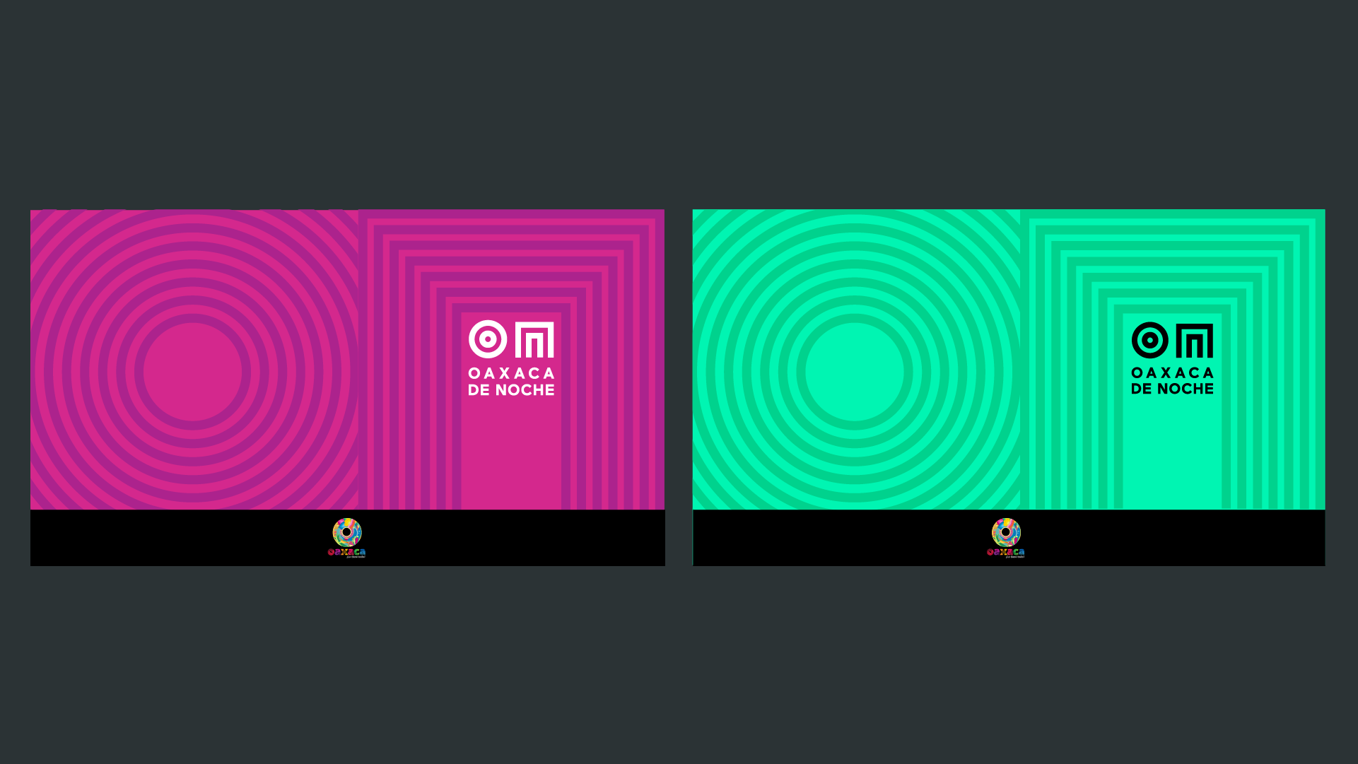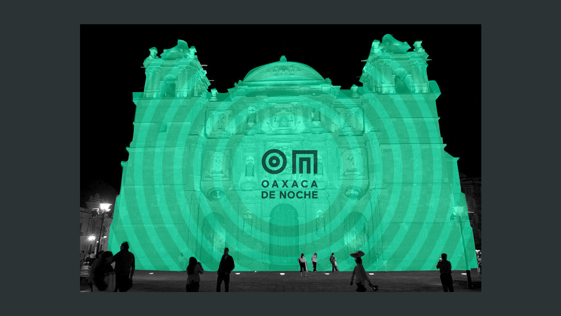 Oaxaca de Noche fue una serie de proyecciones de videomapping en las plazas públicas del centro de Oaxaca. Para la identidad de los eventos, Cocolab necesitaba una imagen que aludiera a la tecnología multimedia pero también manteniendo cierta identidad coherente con la cultura oaxaqueña. El color verde se decidió con base en la piedra de cantera, mientras que las iniciales se abstrajeron en una forma parecida al "Chimalli", o escudo guerrero, un motivo de decoración presente en muchas culturas originarias del país. Al mismo tiempo se desarrollaron aplicaciones gráficas que aludieran al diseño textil de la zona.